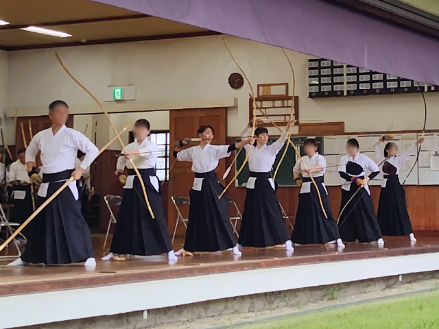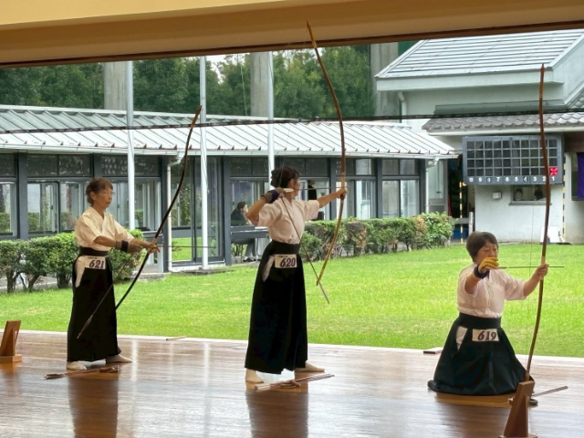 高校女子の部は、3中者4名による優勝決定の射詰競射に進みましたが惜しくも外し、遠近競射で2位に入賞しました。
