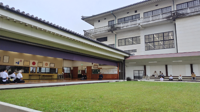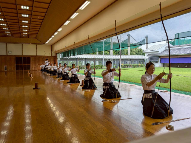 会場の津島市錬成館弓道場は、平成6年のわかしゃち国体の弓道競技開催場所。年季を感じますがとても立派な施設です。