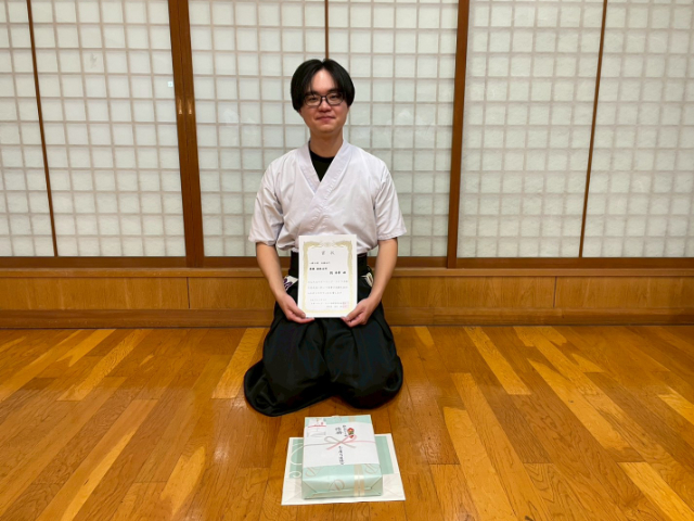 一般四段以下の部は、皆中者1名でみごと優勝!