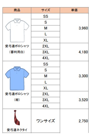 愛弓連事務局より、愛弓連ポロシャツ(審判用白、役員用紺)とネクタイ斡旋の連絡がありました。