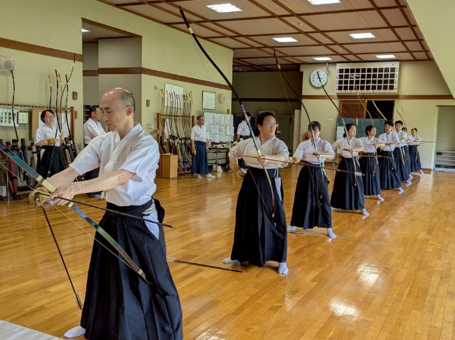 暑さが心配でしたが、途中で休憩を入れながら、行射をしました。