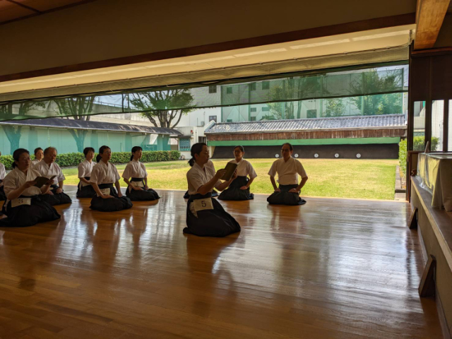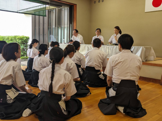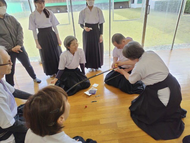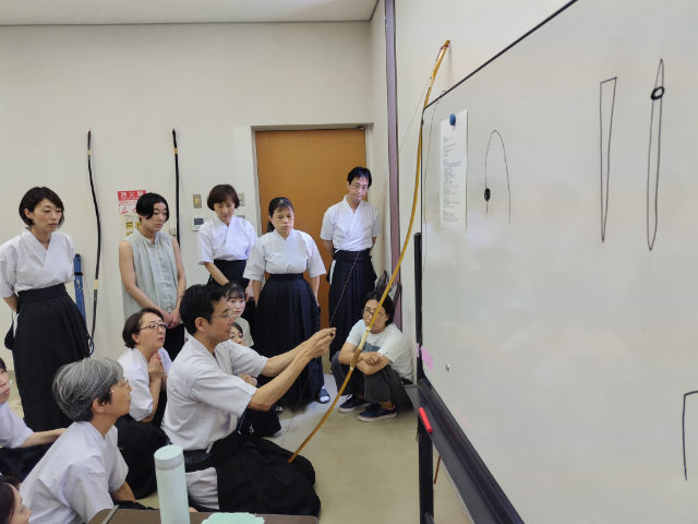 第二介添の要領については、講師による流れを見た後2グループに分かれ、射場内と的前の所作をそれぞれ習いました。