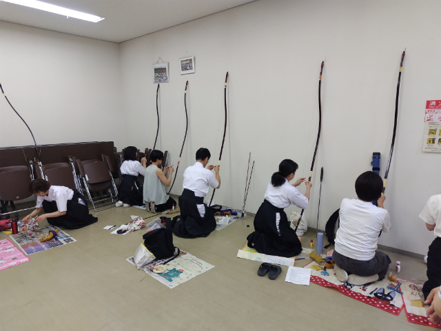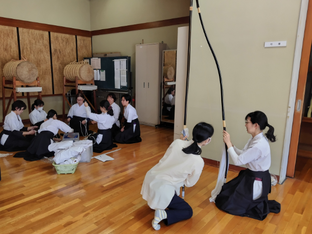 令和7年度の弓道教室に向けて、道具の整備を行いました。